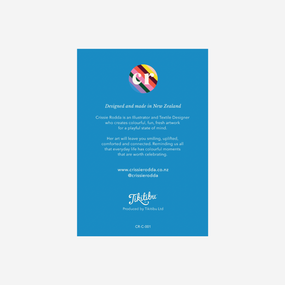 Crissie Rodda is an Illustrator and Textile Designe who creates colourful, fun, fresh artwork for a playful state of mind. Her art will leave you smiling, uplifted, comforted and connected. Reminding us all that everyday life has colourful moments that are worth celebrating.