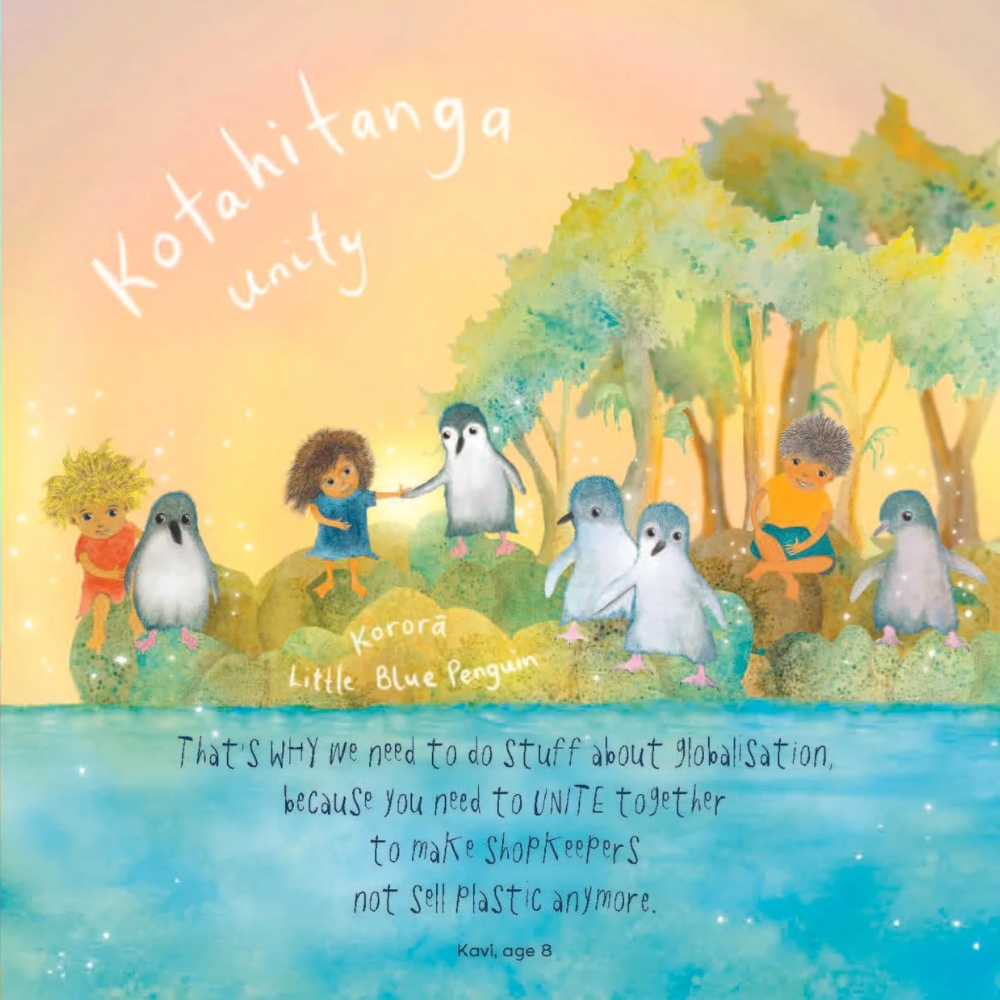 Through their voices, young people share hopes, questions and challenges for adults, reminding us of our duty to protect the earth for future generations. Interwoven with their messages are vibrant illustrations, a kuputaka of native species, and practical steps we can take to support Papatūānuku.
