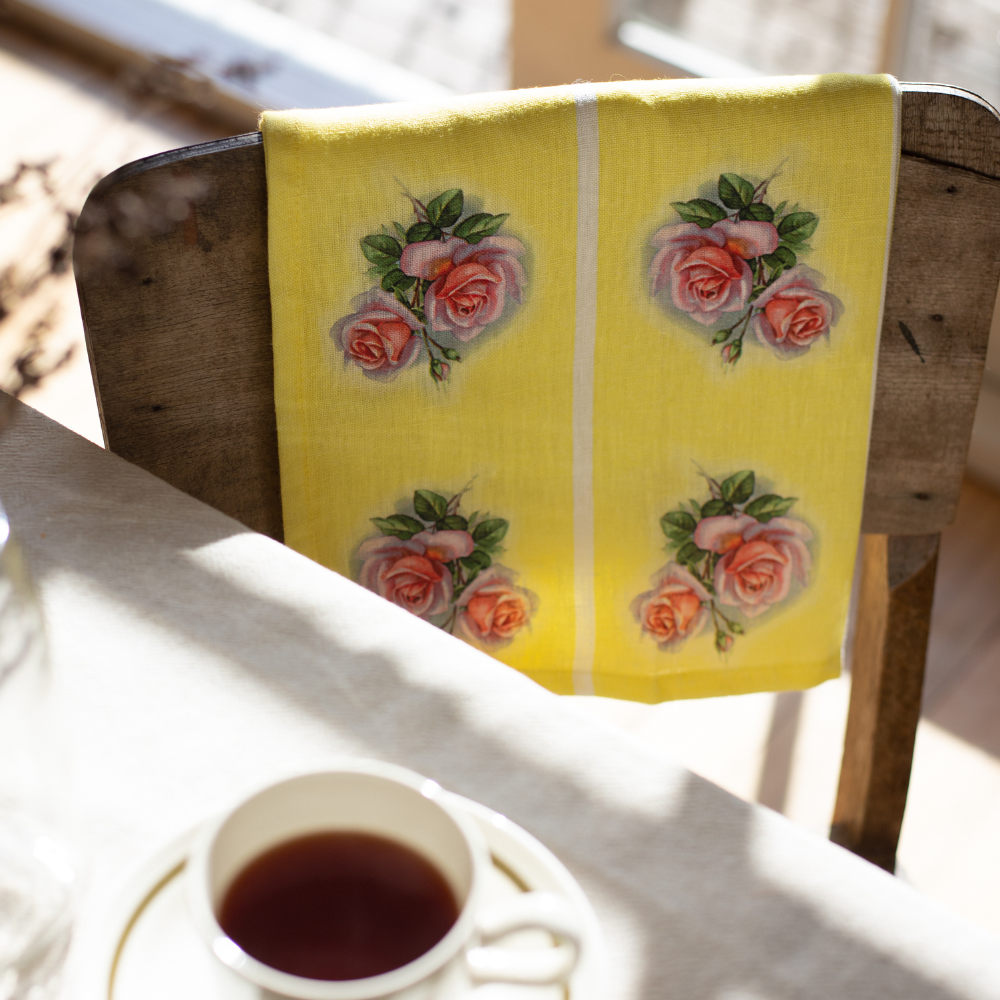 Pure kiwi nostalgia. Vintage Rose design tea towels from the 1950s. Back when nearly every backyard had parsley, roses and chooks, and when your birthday wishes came in the mail. Available in three cheerful classic vintage colours on soft and absorbent linen that gets lovelier with use.
